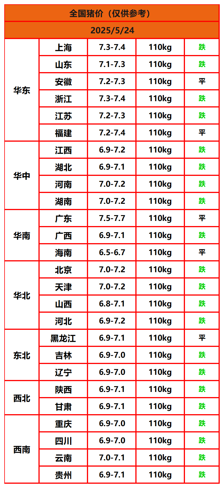 今日猪价 | 2025年5月24日全国猪价行情一览表!